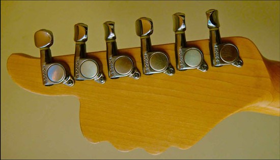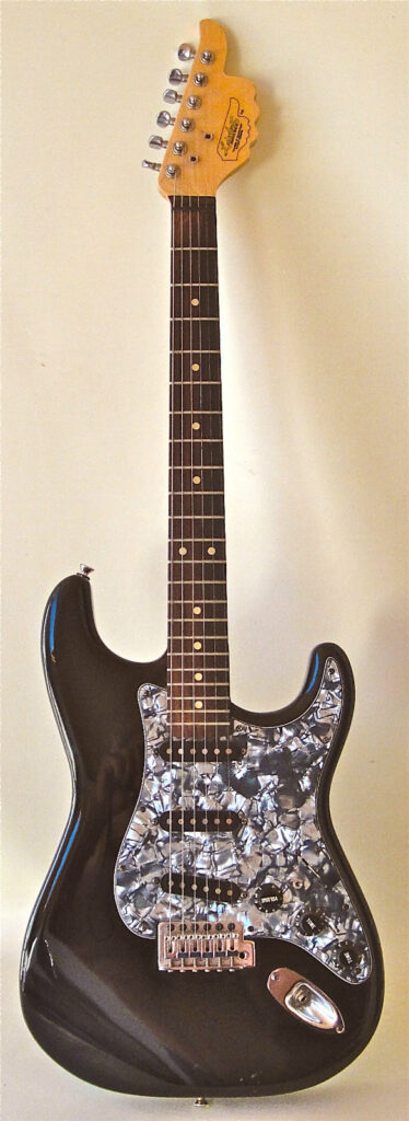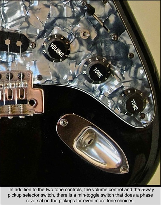 To be honest with you I don’t recall exactly. This was made 15 years ago you see. I had found an engraver in town who also made the plates for the guitars I gave to Ricky Skaggs, Johnny Cash, and Willie and Chet and Carl Wilson and others. So I had plates made for the ones I took to that show too. I think that the TR was for tremolo and that the 3 1’s was for 3 single coils, but can’t recall how I made up the numbers. I made that one because Freddie Tavares who had designed them had just died and on his death bed he called me and told me to go to the show and show my guitars there. And gave me the address and phone numbers for NAMM. Thus the name “Tribute”. His wife could not let me use his name because she said Fender wanted it for something they were going to do. Otherwise I had offered Tamar (Freddies wife) that if I got orders for them, I would pay her some money for royalties. Anyway, there are so many kinds of strats out there that it did not get any orders and I was unknown at that show. I can assure you that it is the only one like it and that no more were made. It was sold at the closing of the show and I can’t recall what I got from it to not have to ship it back to Washington. I think it was supposed to sell for 1199.00 at the time I showed it. Pickups are alnico. That back cover for the trem has a little plate in the middle of it that pops out so you can do string changing without removing the screws.